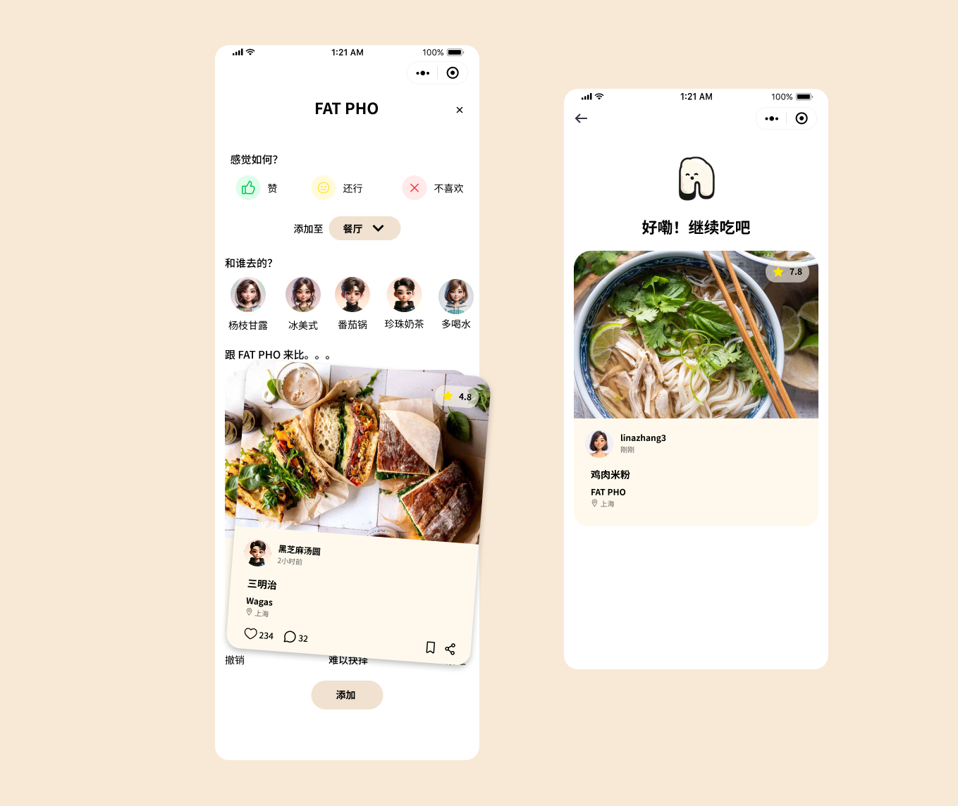 Unified Discovery Experience: The home page also acts as a discovery hub, allowing users to see both friend activity and general content from one screen. This dual-purpose design eliminates the need for constant navigation between separate feeds, creating a seamless browsing experience. This two-screen flow demonstrates a social-first approach to food discovery that combats the ad-saturated, untrusted content common in Chinese foodie apps. By foregrounding friend activity and user-generated content, the design builds trust through social proof.